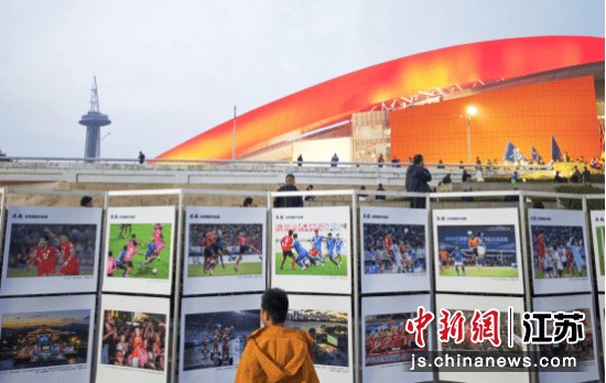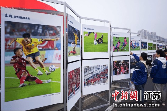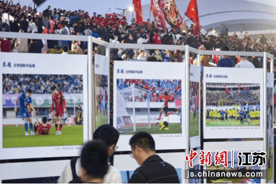 11月1日,“苏超”优秀摄影作品展在南京启幕。展览分别在南京奥体中心东门广场和江苏省现代美术馆展出。