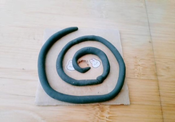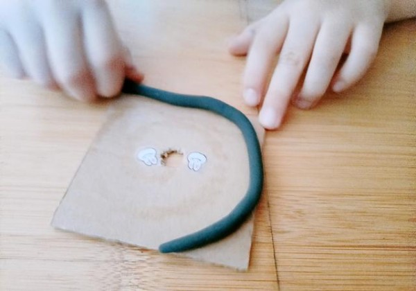 (2)取来家中黏土,揉成长条形,稍微风干。这样做是为了确保宝宝在使用黏土进行黏贴时,不易变形。简单的处理,让宝宝玩黏土的过程更加顺利。