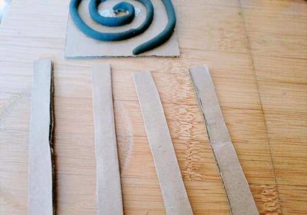 根据黏土和纸板的高度,裁切四条相应尺寸的纸板。