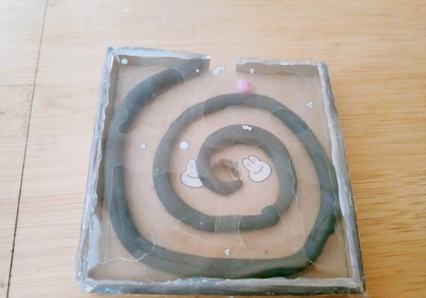 将小珠子从开口处轻轻放入,随后移动纸板,观察小珠子如何巧妙地从中间的小孔中滑落而出。