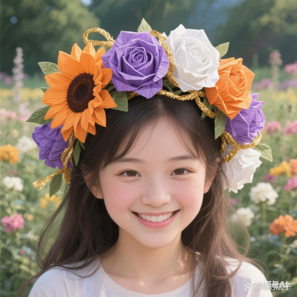 用皱纹纸制作玫瑰、向日葵等不同花卉时,可以编织花朵的成长故事。