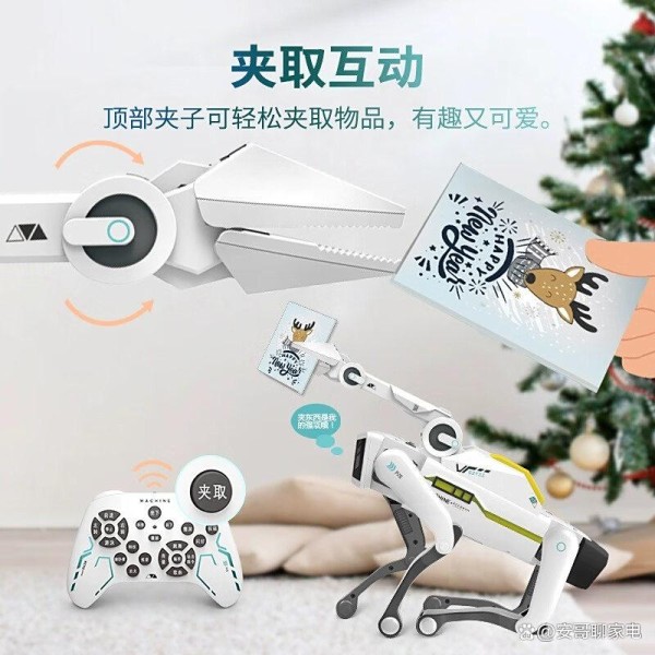 除了外观上的亮点,这款机械狗的功能也非常丰富。它支持遥控操作、手柄控制、语音声控等多种操控方式,孩子可以通过不同的方式与它互动。此外,它还能实现握手互动、唱歌、跳舞等动作,甚至能通过编程设定一系列趣味动作,让互动更加个性化。
