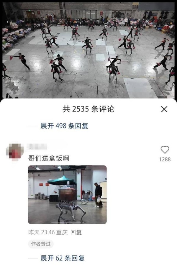 今年讨论热度最高的节目是张艺谋导演的机器人(18.100, -0.29, -1.58%)创意舞蹈节目《秧bot》,围绕该节目的讨论从除夕夜播出到大年初一都在小红书中刷屏,有人把今年春晚转手绢超乎神技的机器人和2005年春晚中亮相的动作有点笨拙缓慢的机器人“前辈”作对比,还有人在热议机器人穿大花袄:“在中国,高科技机器人也得老老实实给七大姑八大姨表演节目”“赛博秧歌队还是出现了”“高度近视的我以为是外国人在扭秧歌”“也不知道笑点在哪里,但是看一次笑一次”,扭秧歌的机器人也硬控了小红书上的一众外国用户,有美国网友留言“我不知道用什么词来形容你们,太酷了。”机器人的研发公司宇树科技在小红书上也发布了在后台机器人的“排练”过程,视频中一个送货的机器狗逗乐不少网友:“机器狗给机器人送饭了。”