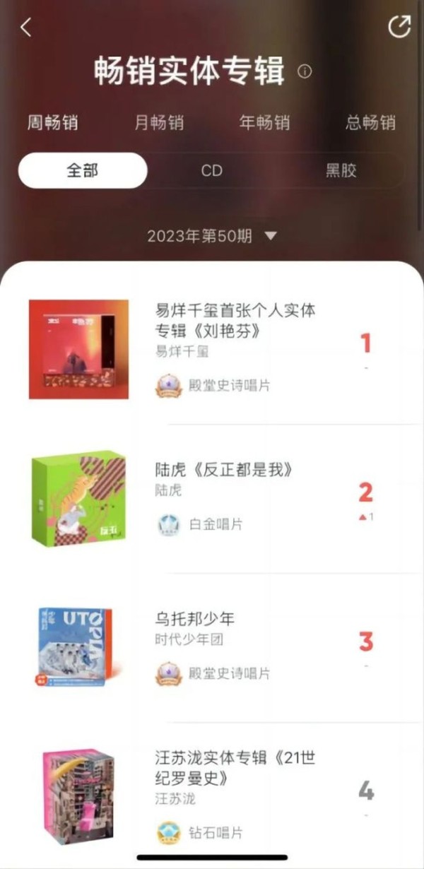 早在年初就有很多人预测2023年实体专辑会回暖。随着华语歌手扎堆发行专辑,新的担忧也随之而来——在这亮眼的销售额中,是否潜藏着泡沫经济?实体专辑出售的究竟是音乐还是粉丝情怀?