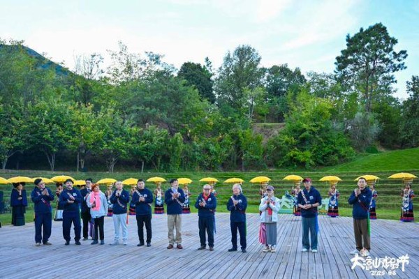 7日傍晚,当夕阳余晖洒向天地之间的谷剧场,悠扬铃声响起,一位彝族老人手牵黑绵羊走入大家的视野。云雾缭绕之间,自然光影交织,四川省级非遗代表性项目“布拖高腔”串联起彝族古老的《朵洛荷》舞、高腔吟唱与毕摩祈福;昆曲《牡丹亭》、京剧《人间好》、彝族“戏剧活化石”《撮泰吉》、藏族《杜基嘎尔》、羌族《释比戏》同台竞演;羊皮鼓、口弦与月琴等交织回响,摩梭《甲搓舞》、藏族《锅庄》与彝族《三十二步》欢腾共舞;中国著名演员濮存昕、法国发起人塞赫日·尼古莱联手当地演员,用汉、英、彝三种语言朗诵凉山本地彝族诗人吉狄马加的诗歌《支格阿鲁》……这场精心设计的开幕演出,让各民族文化特色融为一体,展现出来自土地的磅礴生命力与共聚一堂的温暖情谊。
