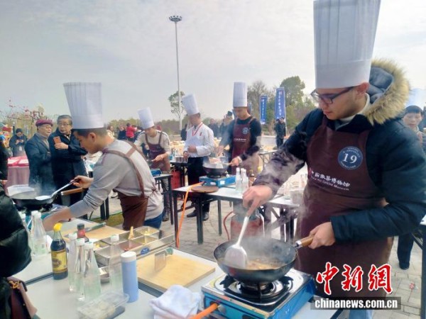 2019年12月28日,第二届徽菜美食文化节在黄山市的中国徽菜博物馆举行。图为外籍友人学做臭鳜鱼。中新社记者 张强 摄