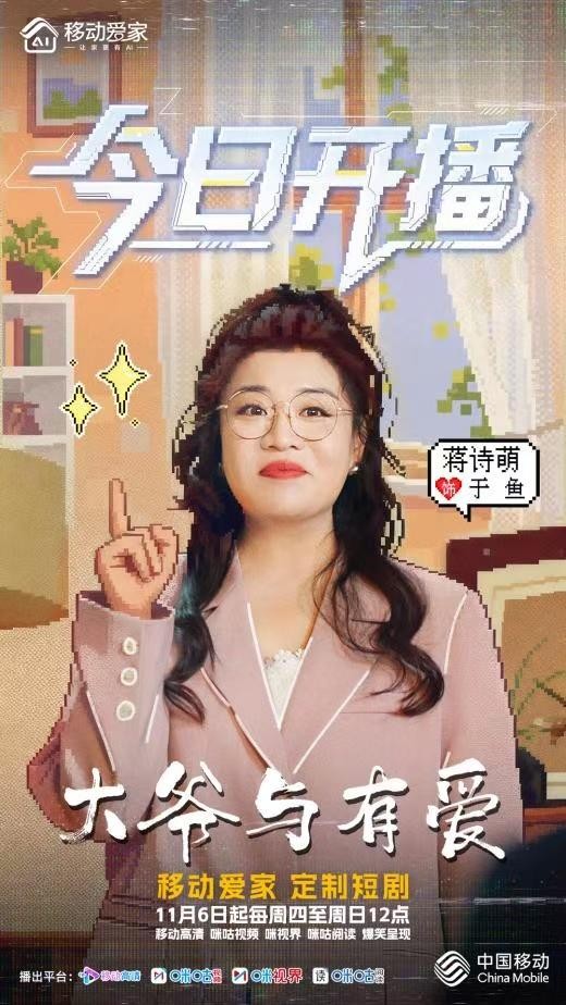 11月6日,中国移动移动爱家定制奇幻生活短剧《大爷与有爱》正式登陆移动高清、咪咕视频、咪视界、咪咕阅读等平台。该剧由于谦、蒋诗萌、泰维领衔主演,孙越、李宗恒、关凌、杨青、卜钰、曹贺军、童飞、周英俊、刘宏禄等特邀主演,聚焦当代家庭生活,从于谦扮演的退休大爷于有艾视角切入,通过一系列奇幻色彩的爆笑故事,以不同代际间跨越年龄的双向互动,引发观众对当下生活与爱的深度思考。