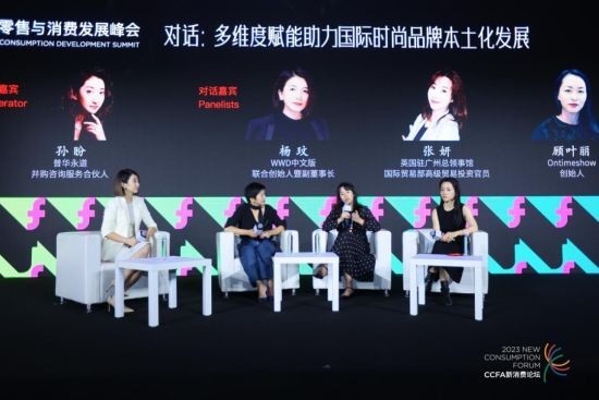 在对话环节,普华永道企业并购咨询服务合伙人孙盼与WWD中文版联合创始人暨副董事长杨玟,英国驻广州总领事馆国际贸易部高级贸易投资官员张妍,Ontime Show创始人顾叶丽,一起围绕“多维度赋能助力国际时尚品牌本土化发展”这一话题展开深度讨论。(完)