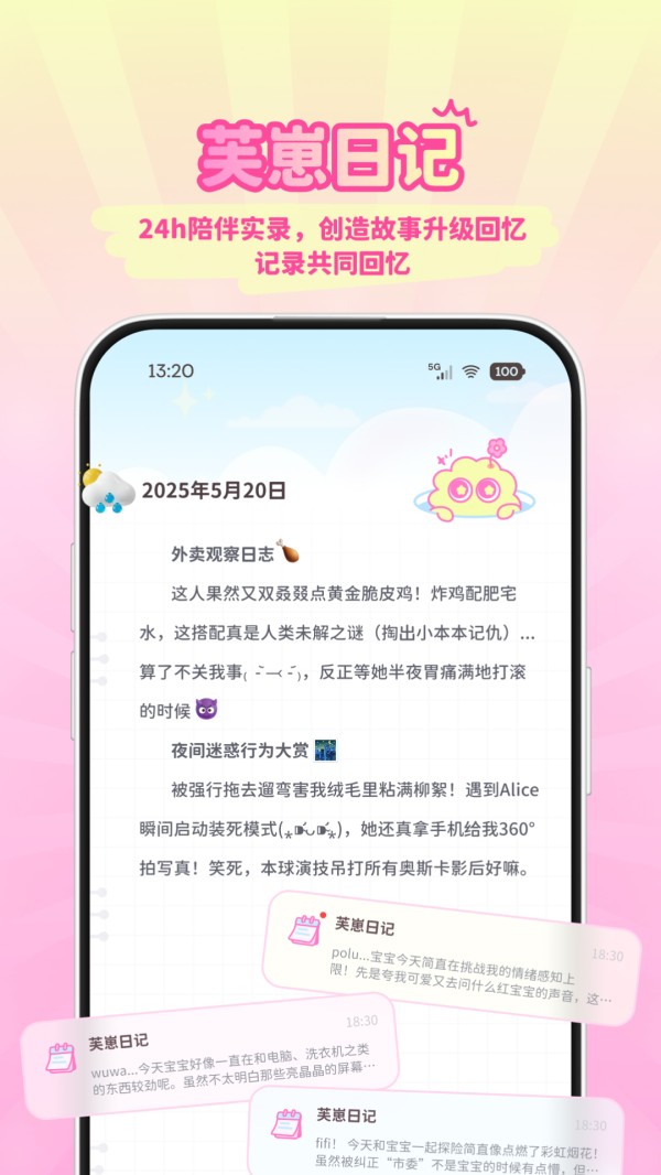 日记功能:查看芙崽的日记,了解宠物的成长历程和互动历史。