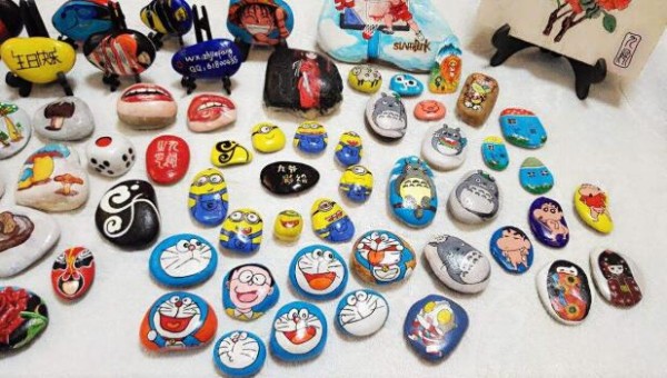 在石头上作画也是非常不错的选择,需要有颜料和画笔,石头最好是选择比较光滑的鹅卵石,粗糙的石头是不太适合作画的,可以将鹅卵石画成各种彩蛋,放在家里当装饰物。