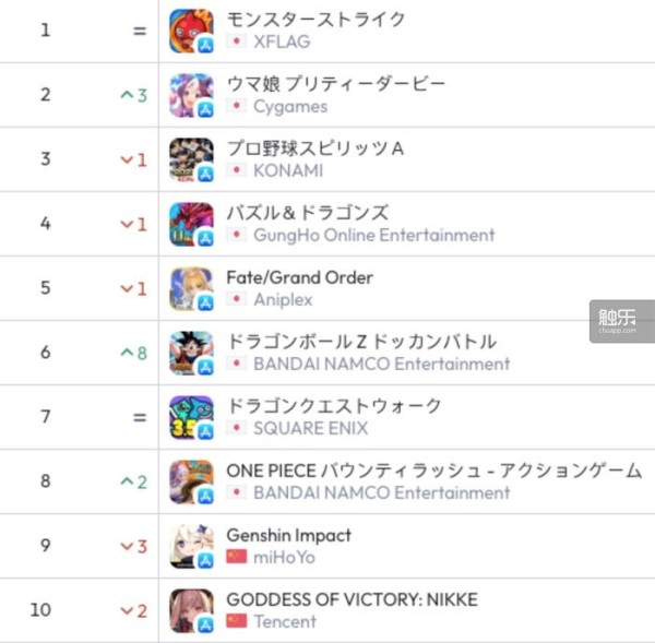 如果把眼光放到海外,我们会发现在《原神》同期,表现较好的二次元游戏也不算少(当然,多数只是在单一市场表现优秀)。2021年的《赛马娘》、2022年的《绯染天空》《胜利女神:妮姬》等,在收入和影响力上都很不错。《原神》在海外市场仍然以强者姿态出现,但并非如国内市场一般碾压众生。