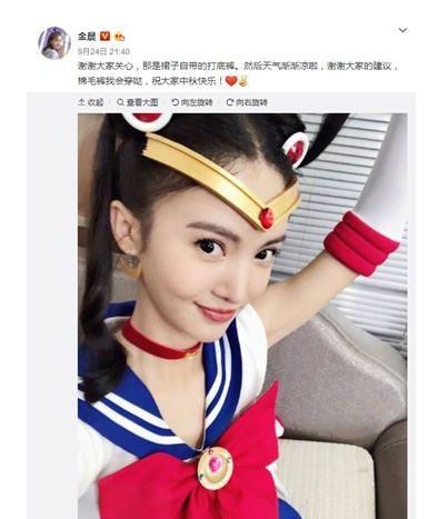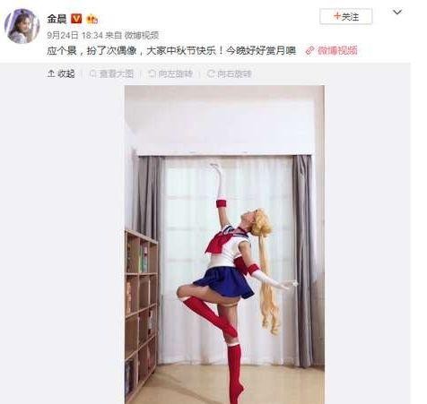 当下娱乐圈的小花们也是紧跟时代潮流,在中秋节那一天,金晨便在社交软件上晒出了自己模仿水明月动作的视频。视频里的她如同一个专业的coser,带着金色的假发,穿着水冰月的标配服装,优雅地做出了水冰月的动作。许多网友称赞,真不愧是学舞蹈出身的,举手投足间都非常的优雅。但是有许多细心的网友也观察到因为裙子太短,金晨的打底裤完全暴露在了外面,看起来十分像是走光了,一些热心粉丝更是贴心的为偶像P上了一个月亮,可以说是非常机智了。
