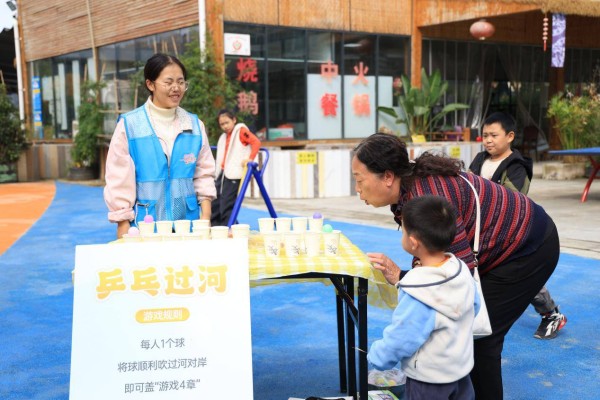 “母鸡下蛋” 游戏区堪称现场最热闹的角落。老人们手上拿着特制的道具,将盒子里的乒乓球抖落至指定区域。“加油!还差一个!” 一旁的同伴们加油鼓劲声此起彼伏,有的老人动作娴熟、节奏明快,乒乓球 “噼里啪啦” 接连掉落;有的则略显笨拙,急得脸上泛起红晕,引得现场笑声不断。