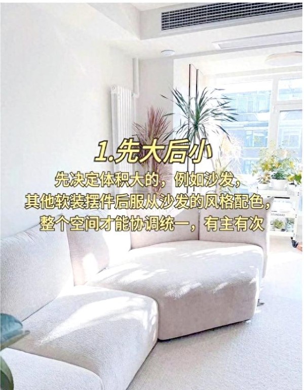 在着手软装搭配时,应当首先考虑沙发等大型家具决定家居氛围。一旦这些家具确定下来,整个空间的氛围和呼吸方式也随之确定。选择家具时,不仅要注意其美观性,更要确保避免视觉上的冲突。例如,选择浅灰色的沙发,是因为它不仅美观,还能为其他家具和装饰物让路。