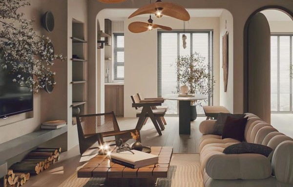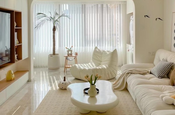 尝试不同材质的搭配,让家更有特色。比如奶油风的白色绒布沙发搭配木质茶几,温馨治愈感十足。