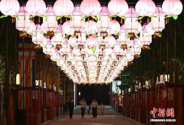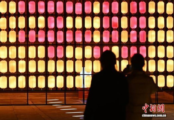 11月9日,大量灯笼组成的灯阵吸引游人驻足。当日,浙江宁波奉化雪窦灯会对民众开放,近千盏彩灯入夜点亮,璀璨景色吸引游人参观。中新社记者 王刚 摄