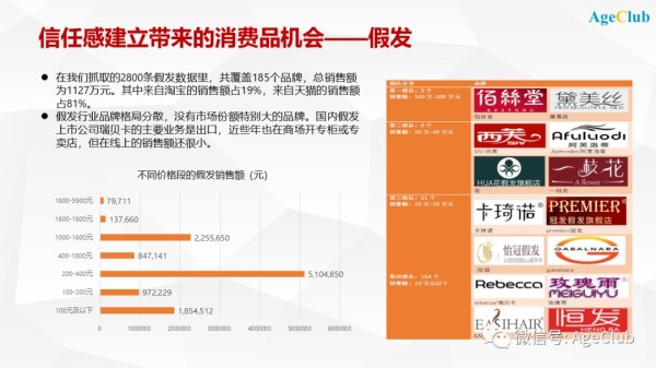 这种信任感的建立其实也是做中老年消费品,尤其是高单价产品的关键。我们最近对中老年假发市场做了研究,发现这个市场一方面比较混乱,从产品到价格到品牌到销售渠道,都有很多不完善的地方。