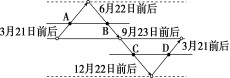 (1)关于二至日对称的两个时间,如A点和B点,太阳直射点位于同一个位置。