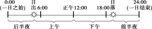 ② 夜间:日出、日落时间关于0时对称。