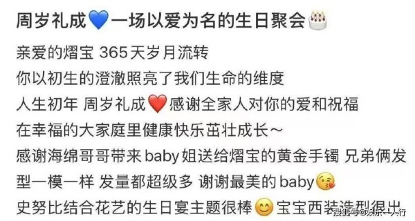 表弟媳的感谢文案也值得细读。 她特别提到"谢谢baby记得小表弟的周岁",这个"记得"二字很微妙。 要知道黄晓明家族庞大,光是堂表亲戚就有二十多人,能准确记住每个孩子的生日需要极强的用心。