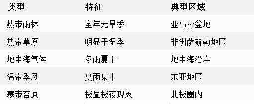 依据柯本气候分类法,地球主要呈现以下气候类型: