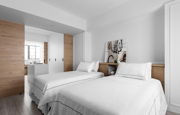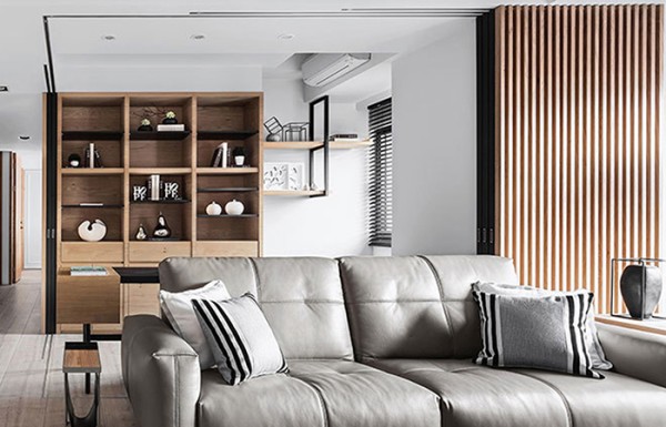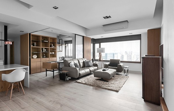 心灵的释放,白、灰、黑搭配木饰面板,展现当代时尚与舒适感,这怡然自在的生活样貌,用干净的线面及开放的尺度,让洒下的日光成为最知性的语言。
