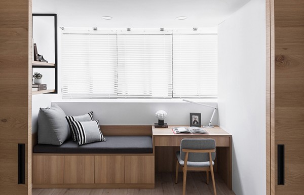 卧室窗边设有卧榻与书桌,在瑜珈运动后可以休憩静心。