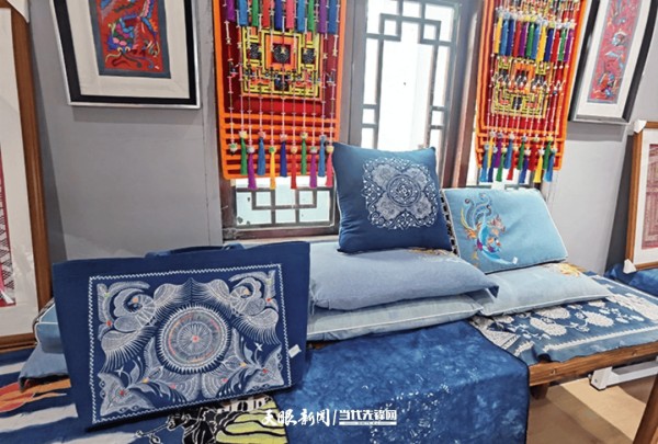 随着化屋旅游发展步伐加快,杨文丽的蜡染刺绣也得到了游客的青睐,产业越做越大。如今杨文丽的车间带动了22名绣娘就业,她设计的融入蜡染刺绣元素包包、挂件等,通过直播,卖到全国各地,最多的一场直播就销售了9万多元。