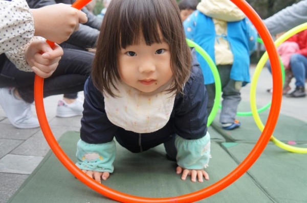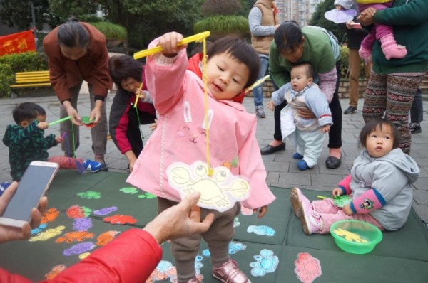 充分的“快乐舞动”热身过后,老师们拿出了精心准备的玩具——瞧,可爱的小鱼、小螃蟹们正在池塘里静静等待着宝贝们的到来,在老师的指导下,孩子们小心翼翼地拿着鱼竿,专注地瞄准鱼儿、螃蟹的嘴巴,在成功钓起时兴奋得和周围的人分享着喜悦之情;还有“小动物钻洞洞”游戏,这是一个符合2周岁左右的幼儿进行的游戏活动,通过生活中简单“爬”的动作,融入到情境中,发展幼儿手臂、腿脚等大肌肉群。宝贝们对排列整齐的洞洞十分好奇,又是爬,又是钻,一刻也不停。