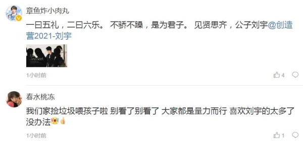 从人数上看得出来刘宇粉丝数量庞大,日后真出道了的话也不愁粉丝基础,所以不难想象,今天的刘宇或许就是明天的蔡徐坤,但开心的同时,也有粉丝说出来了自己的担忧,并且还直接撕破脸表示选秀什么的本质上来讲就是一场骗局,忽悠着心怀梦想的少年们前赴后继,吸引着粉丝们疯狂打投,结果本期选秀一结束,所有的珍珠都被一股脑地推向大海,平台能给的后续资源微乎其微,甚至可以说是根本跟不上,如此情况下粉丝流失、爱豆越来越无光。甚至于在完美表演完之后,还要小心翼翼地询问,自己表现的是不是有哪儿不好?