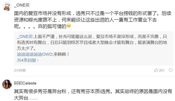 不得不说,粉丝们的担忧很有道理,分析的也很透彻,但毕竟选秀对于爱豆来说确实是一块打开娱乐圈大门的敲门砖,所以爱豆们前赴后继是有道理的,粉丝们也不用太过灰心,未来如何是谁也说不准的事情,量力而为的支持他们就好了。