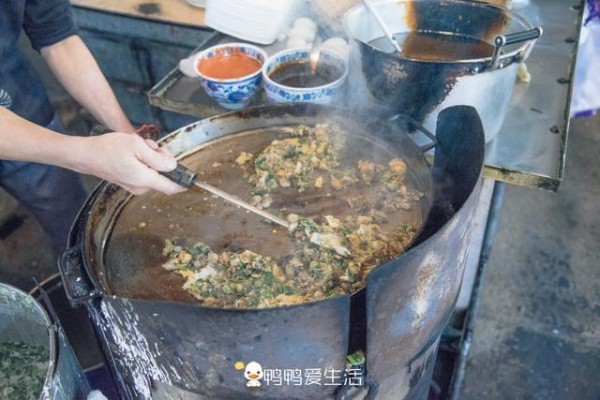 七拐八拐到了一片旧市场,古老甚至有些破旧阴暗的建筑下,只有几个小摊在售卖,但这一处小小的地方却藏了几家有悠久历史的老字号。比如这家福记阿明海蛎煎,据说传承四代,已经有百年的历史了。掌勺的摊主看着瘦瘦的,但做起海蛎煎来可以说是气势十足,光他自己已经在这里摆摊四十余年了,谈起这份手艺,他自豪的说是爷爷那辈就开始做,直到现在他儿子也接班了。看似简单的海蛎煎,能做好却不是一件容易的事。原材料、火候、手法都相当有讲究。