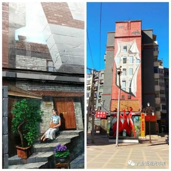 百年的变迁,已经让八卦街上的民国建筑消失殆尽,要想恢复昔日的民国风貌,实属不易。设计者以墙体画再现昔日的老建筑,让整个街区增加了年代感,真是足够心思巧妙了!