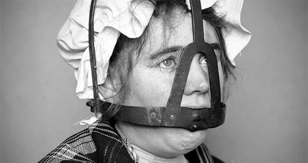 在中世纪,父权社会对女性八卦的惩罚是戴上闭嘴的刑具。© Thoughtnova