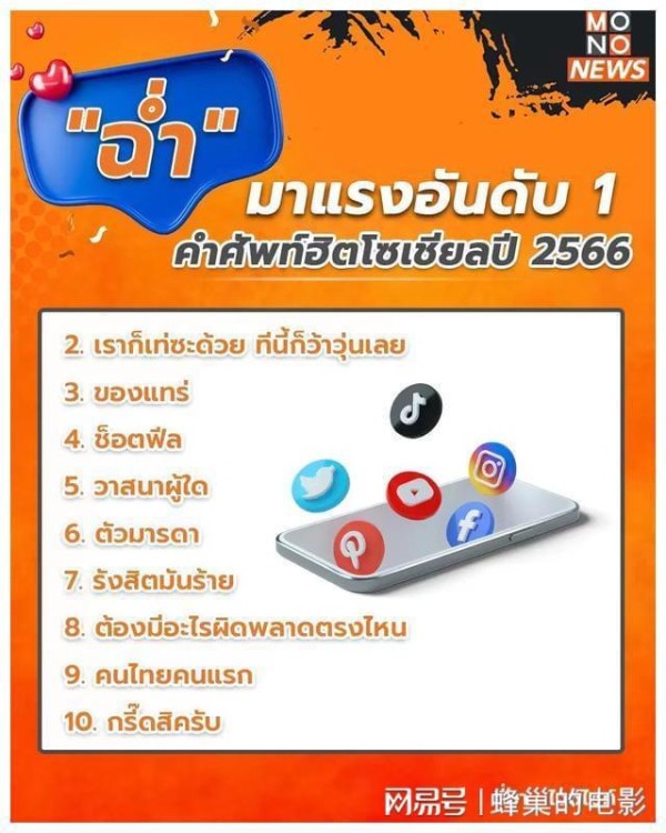 泰国头条新闻社讯 综合泰媒统计,在过去的一年里,有许多来自各个圈子的热门新闻,各大网络流行语也应运而生。接下来让我们看一下泰国人使用频率最高的十大泰国网络热词吧。