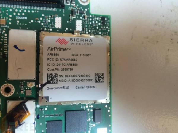 首先,研究者通过拆解车内的T-Box模块,发现它使用了高通3G基带芯片,并使用Sprint作为运营商,如图3所示。另外,还可以使用Sierra无线软件开发工具包来开发和调试这个系统[12]。该车机模块有两个网络接口,一个用于内部Wi-Fi通信,一个通过Sprint的3G服务与外界通信。研究者利用伪基站,可以实现手机网络与Jeep进行通信。