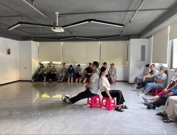 据介绍,此次活动主要以“舞动”与“冥想”动静结合的方式帮助企业职工减压。活动伊始,心理社工通过放松音频带领参与者感受身体的各个部位扭转转动,与心灵建立连接,让参与者放松下来。随后,用趣味的“桃花朵朵开”“文字的魅力”等团队游戏,让大家在参与游戏过程中享受压力释放的愉悦、感受团队合作的意义。