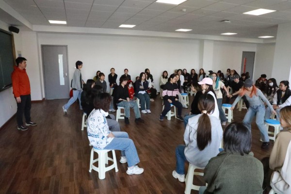 王仁果老师首先为大家介绍了“抢椅子”游戏的规则,并在游戏的过程中启发大家关注自己内心的真实想法,排除外界环境所干扰,专注地进行游戏。同学们分为两组,活动在欢快的氛围中有序地进行。孔小磊老师也加入到其中,作为“最强气氛担当”,通过设置不同的奖惩机制,进一步带动大家的积极性,同学们也纷纷展示和介绍自己,表演了如英语朗诵、舞蹈、唱歌等才艺,活动现场欢笑不断,气氛火热。