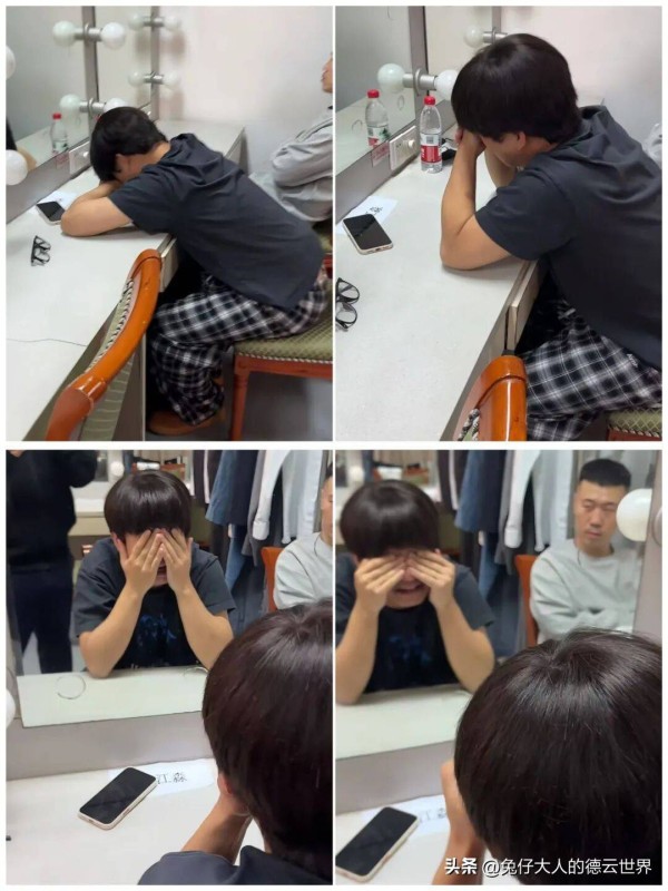 曹鹤阳带着镜头顺着哭声找到了张九龄的化妆位。此时,张九龄正趴在桌上泪流满面,身体也随着哭泣的情绪剧烈起伏。看到师弟如此伤心,曹鹤阳作为师兄自然关切地询问了一番。张九龄一边抹去眼泪,一边抽泣着回应:“四哥,我有头发了,我太激动了。”而当曹鹤阳将镜头对准镜中的自己时,张九龄的情绪更加失控,哭声也愈加激烈。