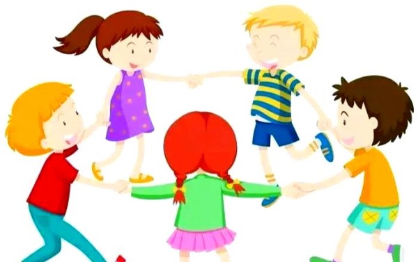 尽量让小朋友自己拉手,提供互动机会。家长可以在后面辅助,防止孩子跑开。
