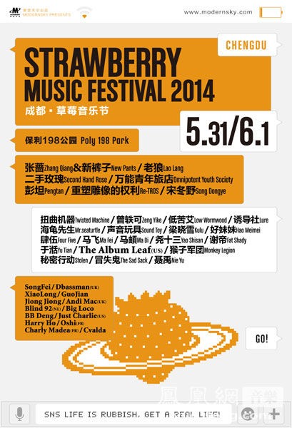 成都草莓音乐节全阵容公布 发布会宋冬野客串主持
