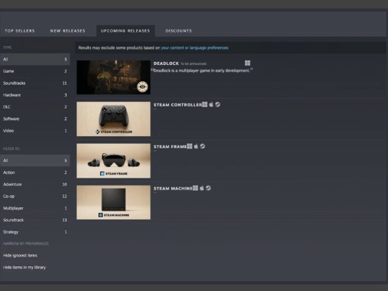日前,还有网友发现,Valve在Steam商店的官方页面上显示目前共有5个即将发布的项目。其中4个已经公开,分别是: