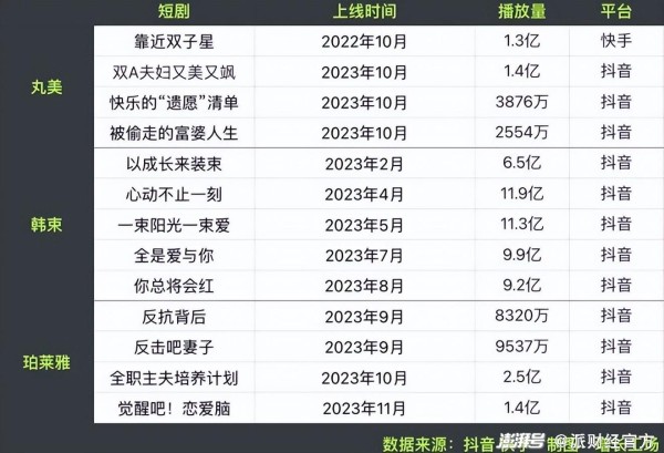 随着微短剧的走火,在内容制作环节也陆续有专业聚焦长剧的影视制作公司入场,如华策影视、柠檬影视、完美影视等,而滋生于长短视频生态的头部MCN机构也早已布局,比如遥望科技、无忧传媒、古麦嘉禾等。