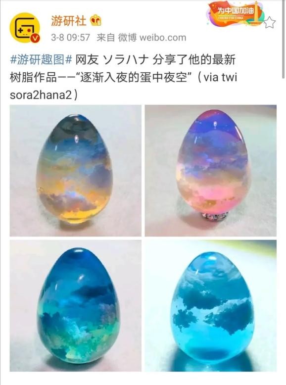 欣赏下树脂艺术作品——“逐渐入夜的蛋中夜空”。