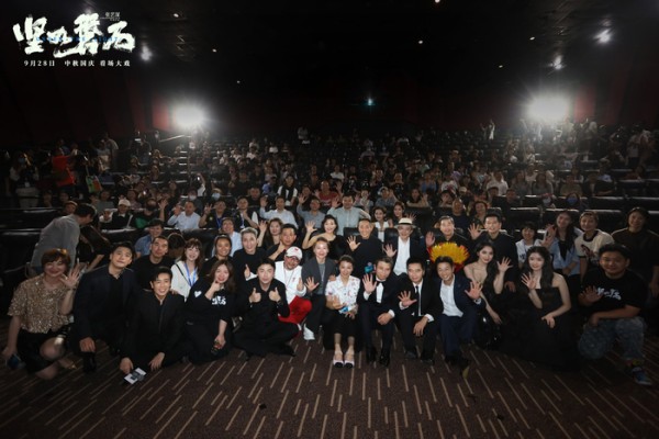 中秋国庆,家人好友团聚,影片首映也是四年之后难得的团圆日子。此次首映礼不只与观众见面,同时也特别邀请了制片人庞丽薇、曹晓北,执行制片人梁郁,摄影指导罗攀、美术指导林木、声音指导赵楠、剪辑指导李永一、造型指导迈琳琳、选角导演付璐璐等幕后工作人员到场,感谢四年来为电影《坚如磐石》付出心血的每个人。好友同事再相聚,不仅仅是优秀电影人之间的惺惺相惜,也是电影创作之路的初心不改,希望这份真诚,也能打动银幕前的每一个观众。此外,影片片尾曲演唱者黄绮珊今日也现身首映礼现场,作为重庆人的黄绮珊看见影片当中熟悉的景色激动到直接现场飙重庆话,银幕内外仿佛跨越时间和空间在这一刻交织。现场黄绮珊也清唱了电影片尾曲,富有力量和吸引力的声线与影片苏见明追问真相的心路历程同频共振,让观众们在歌声中继续回味影片带给观众的震撼。