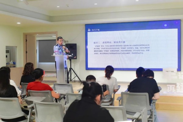 活动现场,区网络文明宣传大使、华东政法大学党委宣传部副部长孙祥飞教授,通过丰富的案例分析,从网络发展与网络传播、文明上网、如何理性看待网上热点事件等,为居民们上了一堂生动的网络安全课,引导大家遵守网络道德,传递社会正能量。“反诈”是筑牢网络安全防线的重要一环,广富林派出所警官洪炜来到现场,用一桩桩生动的案例为孩子们敲响网络安全的警钟,让他们更清晰地了解网络诈骗的手段和防范方法。