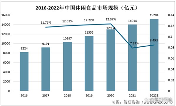 2016-2022年中国休闲食品市场规模