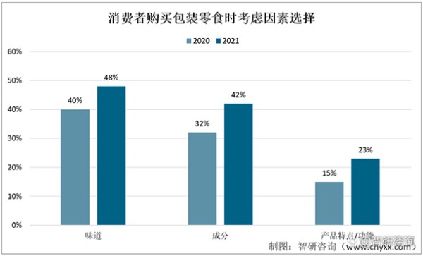 消费者购买包装零食时考虑因素选择