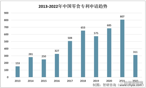 2013-2022年中国零食专利申请趋势