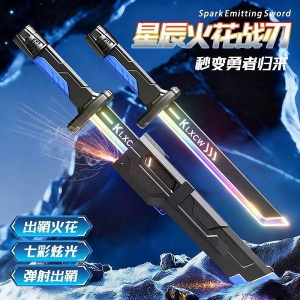 当孩子第一次握住这些喷雾火花光剑时,他们的眼睛会瞬间被七彩流光点亮。这不是普通的塑料玩具,而是融合了声光喷雾技术的“微型特效装置”——轻轻挥动时,剑身会喷射出细腻的火花雾,配合LED流光变色灯光,仿佛真的握住了星际战士的能量武器。